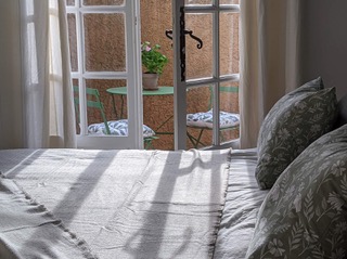 1 double bedroom with doors opening onto an outdoor terrace